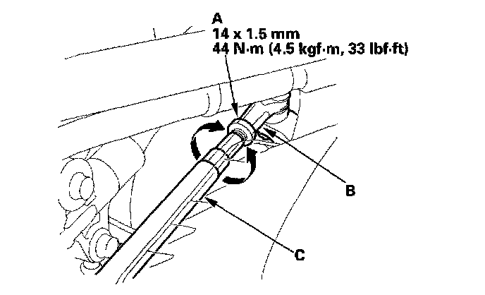 4. Turn the tie-rod arm (C) until the toe is correct.