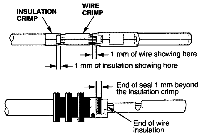 - If you do not have a wire seal, then use the next larger size crimp slot. Position the crimping tool over the insulation crimp section of the terminal, then squeeze the tool with both hands until the stops make contact.