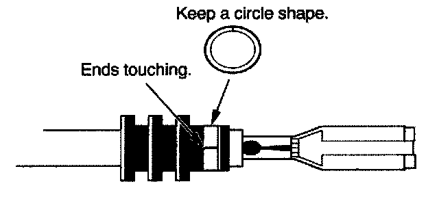 3. Strip the insulation off the end of the wire so the wire fits in the new terminal as shown. (If the wire has a wire seal, replace it with a new one from the kit.)