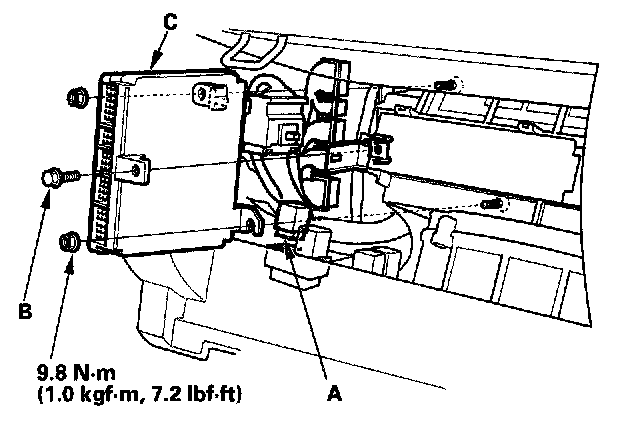 3. Remove the nuts, then remove the ECM/PCM (C).