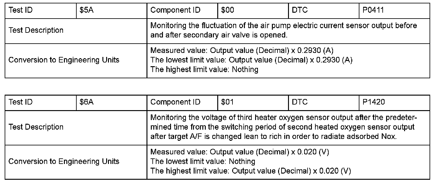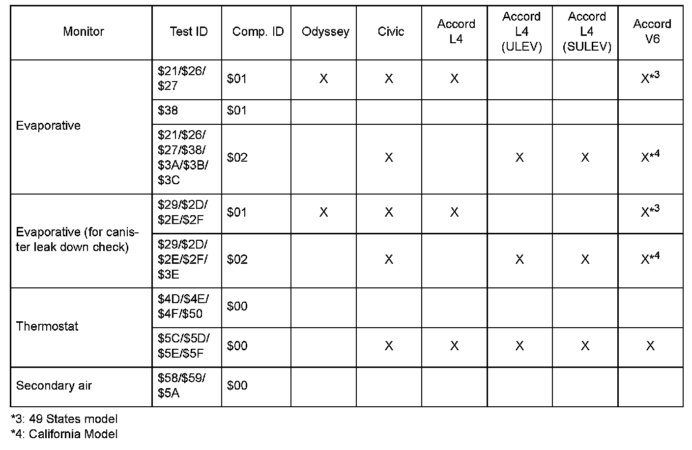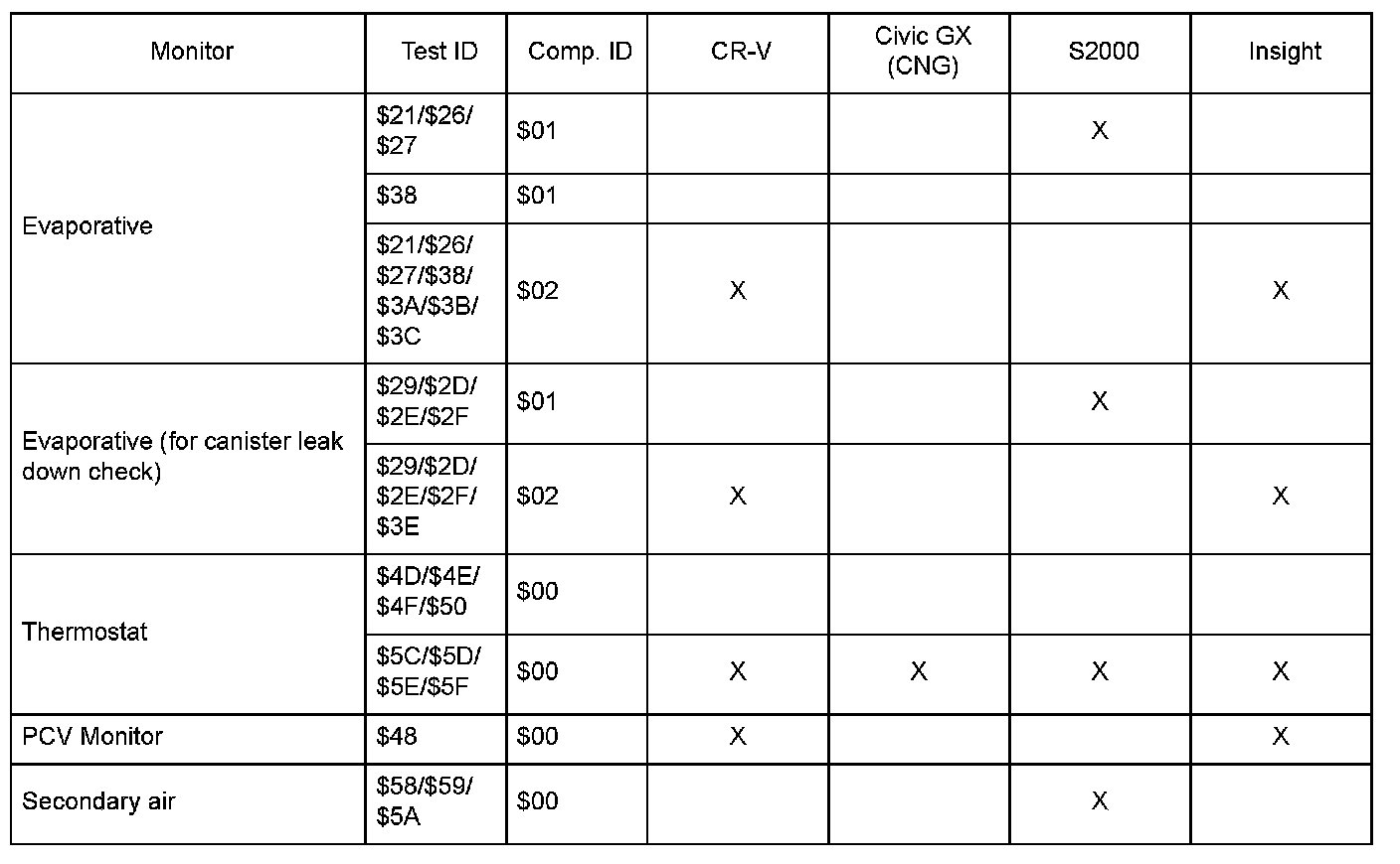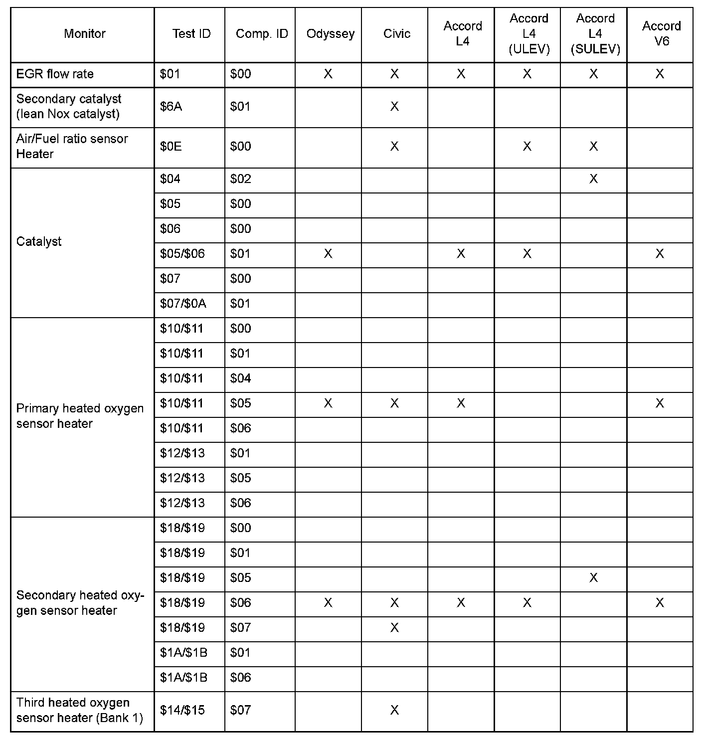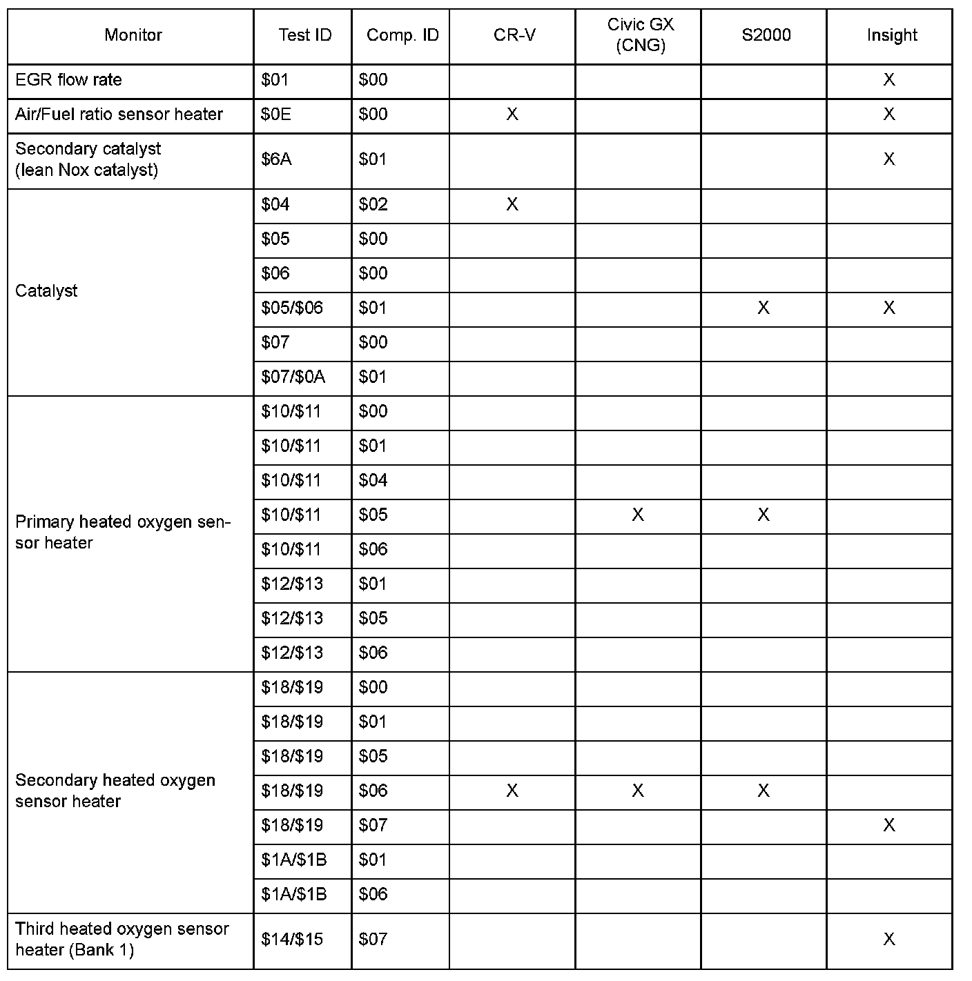 SAE J1979 Mode $06 Test Information: All 2002 Hondas