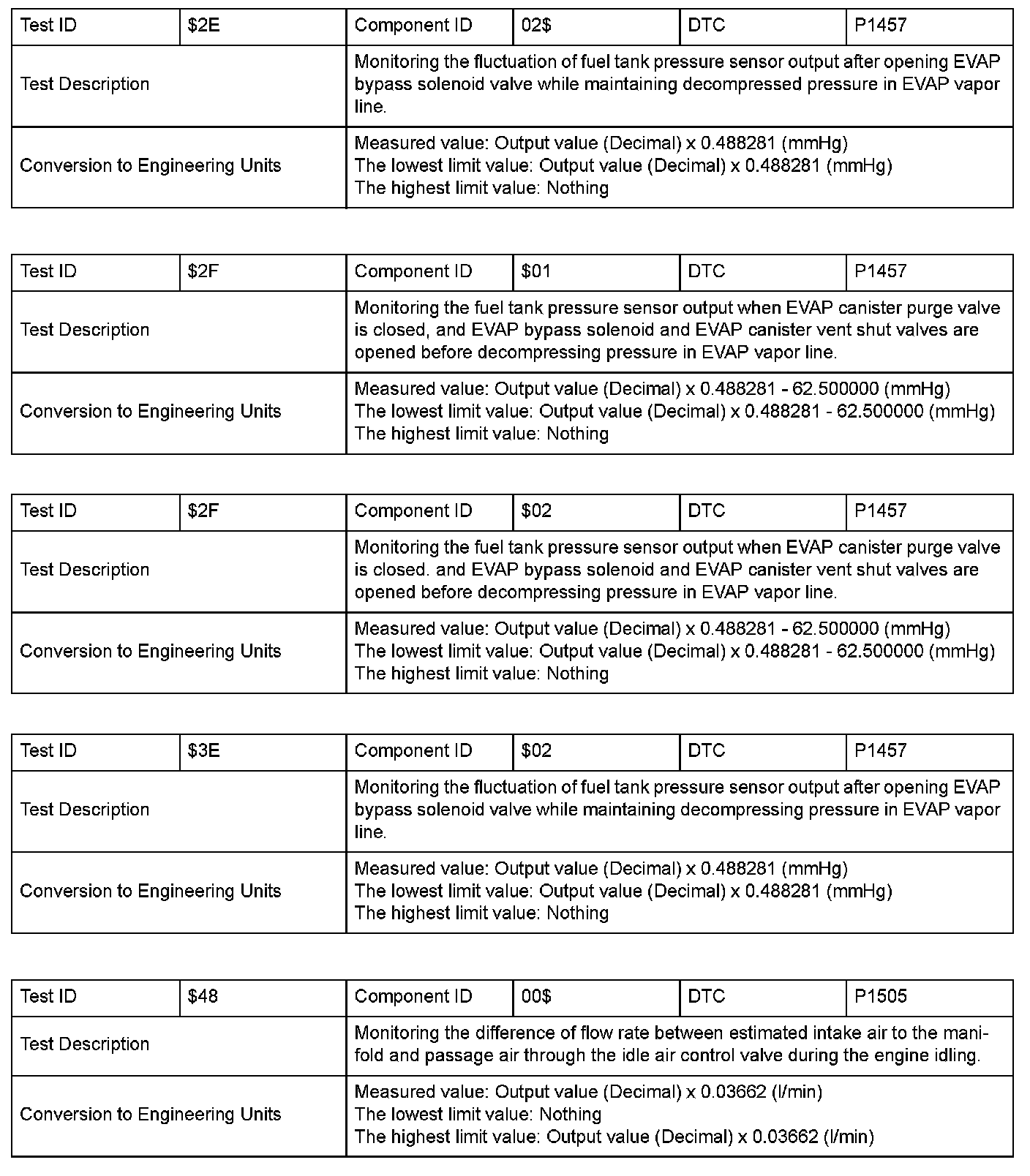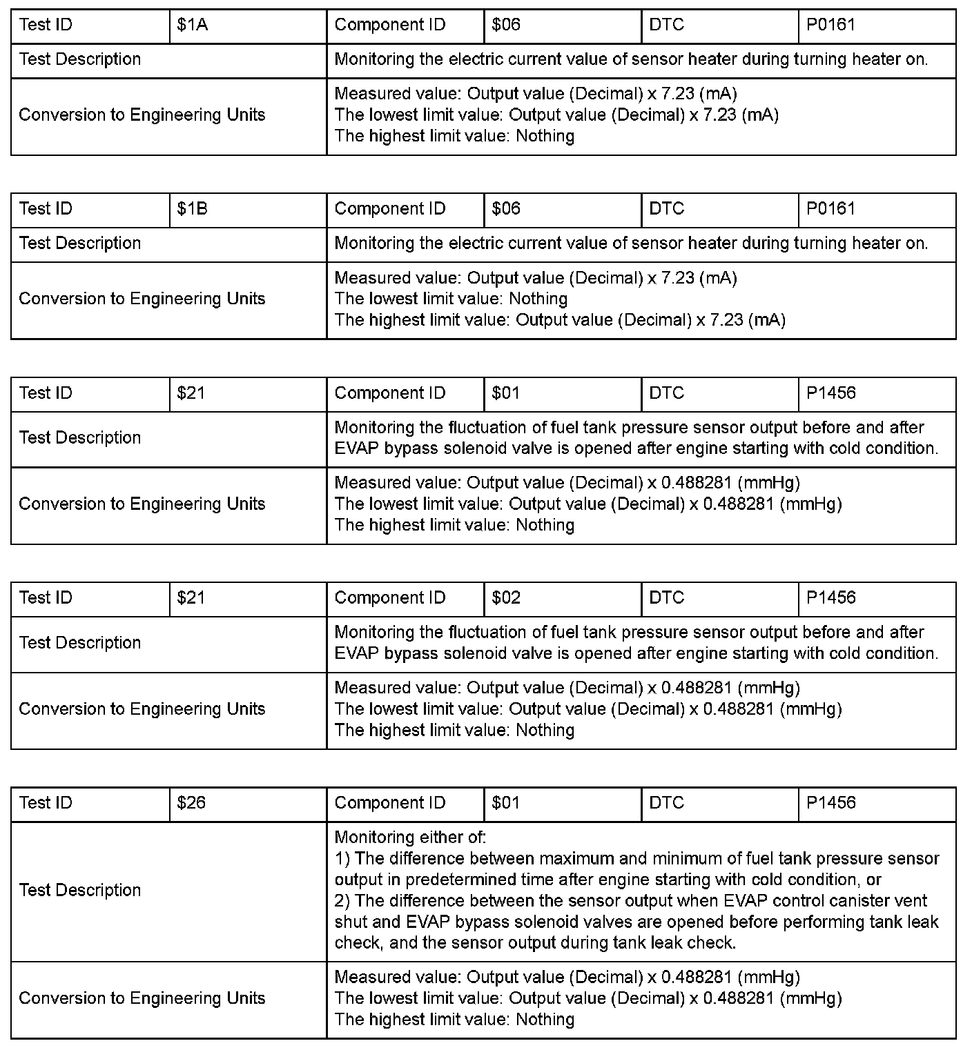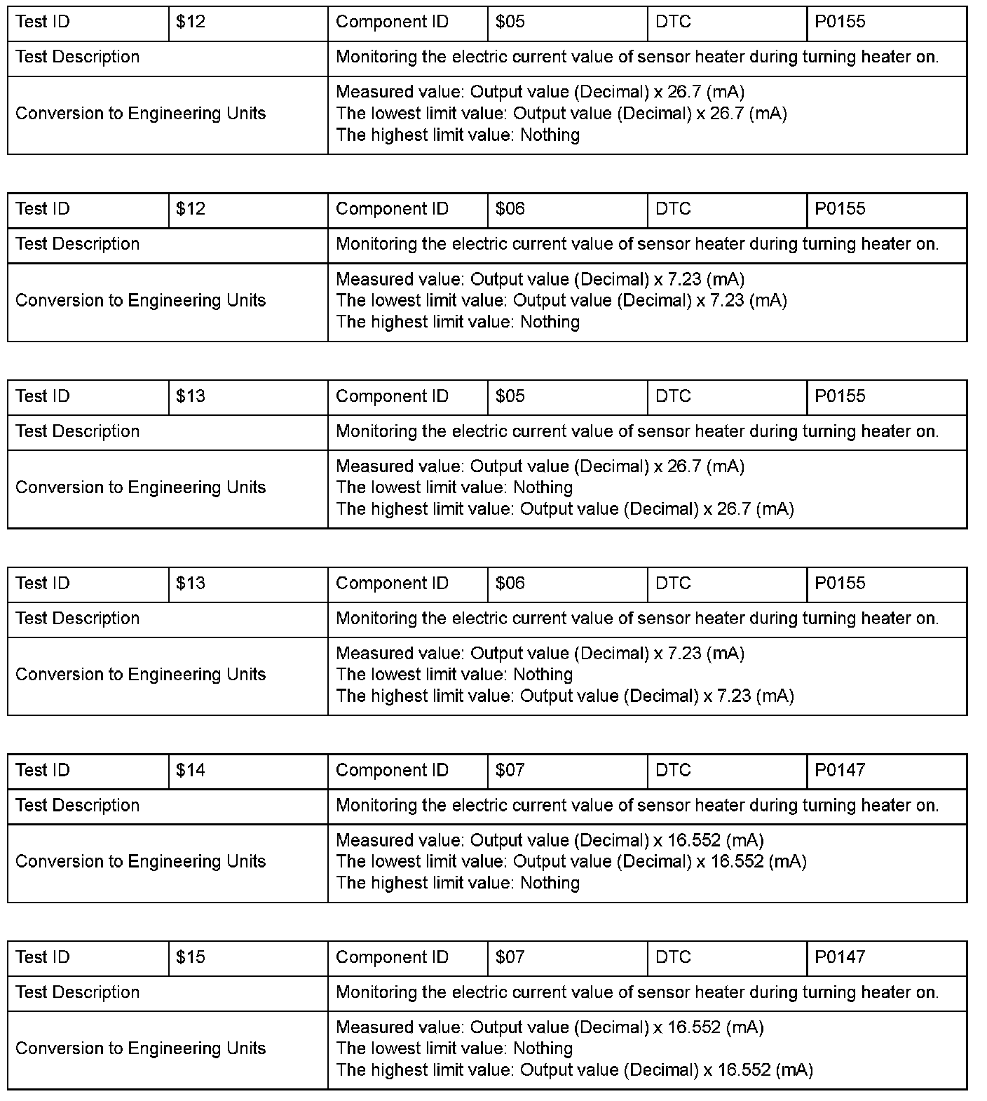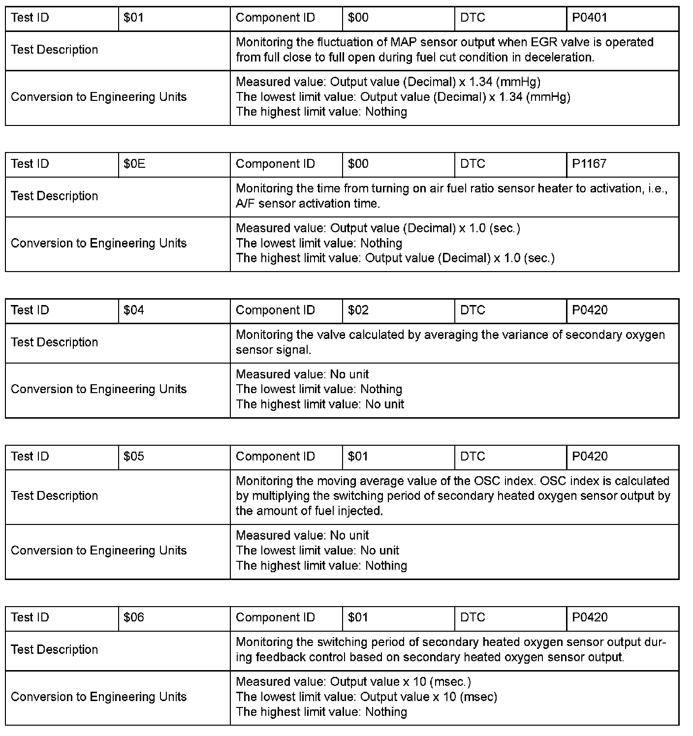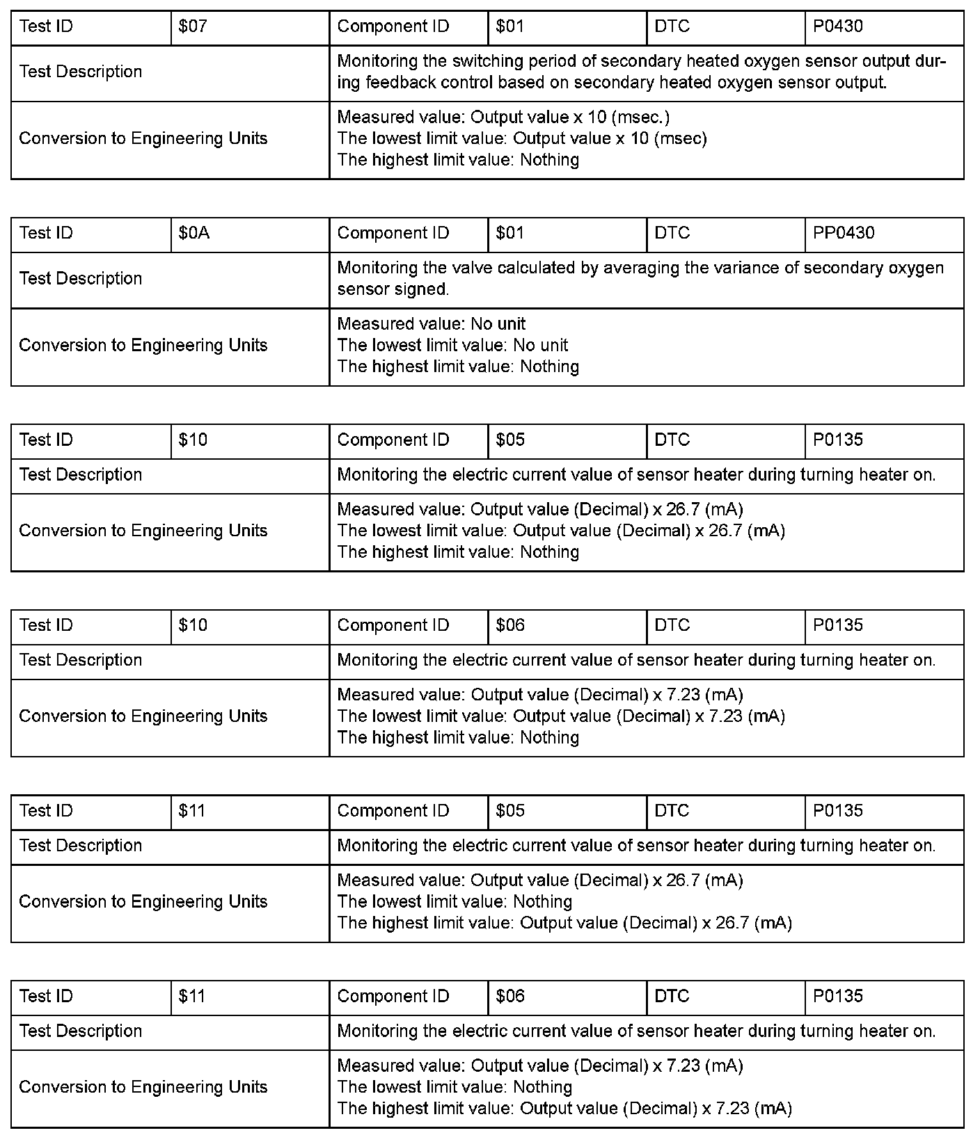 SAE J1979 Mode $06 Test Information: All 2002 Hondas