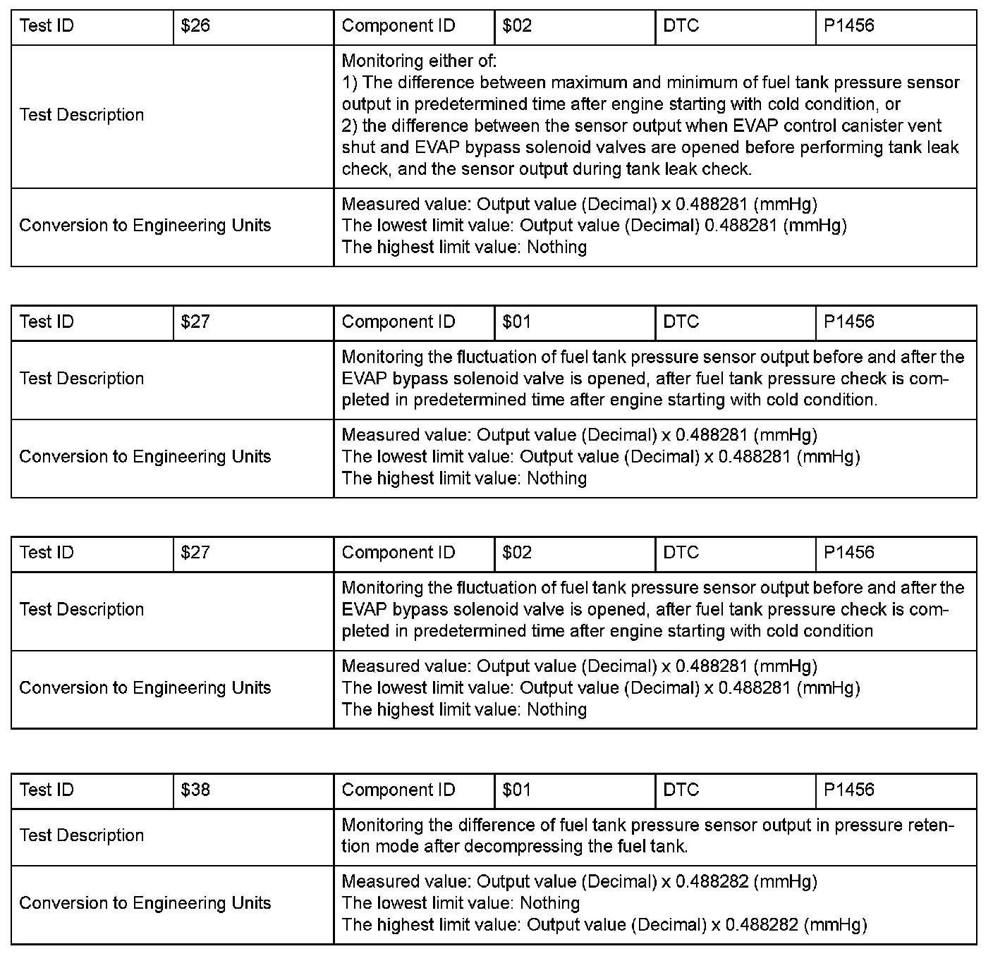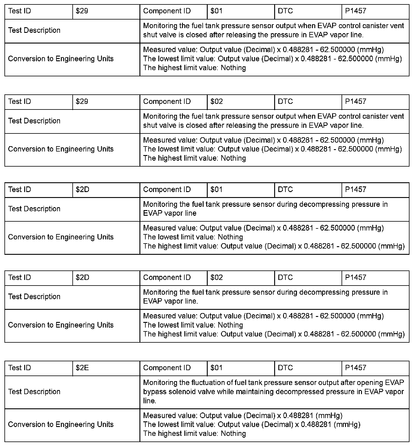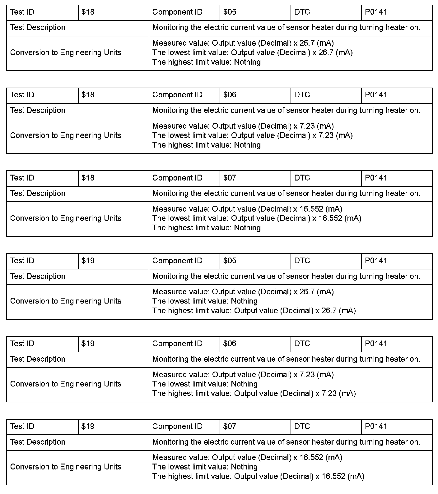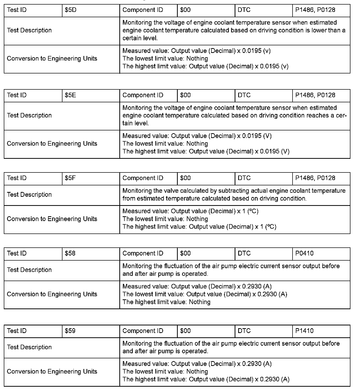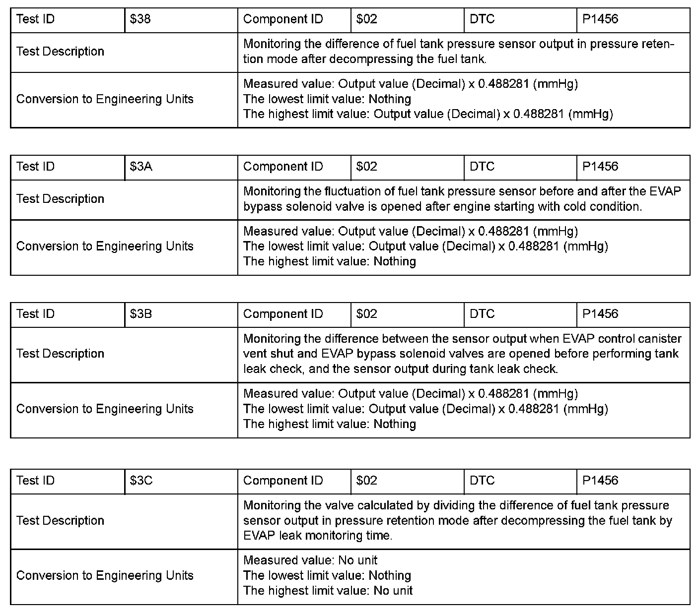 SAE J1979 Mode $06 Test Information: All 2002 Hondas
