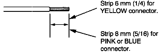 7. If you are using a yellow splice connector, strip about 6 mm (1/4 inch) of insulation off the ends of both wires. If you are using a pink or blue splice connector, strip off about 8 mm (5/16 inch) of insulation.