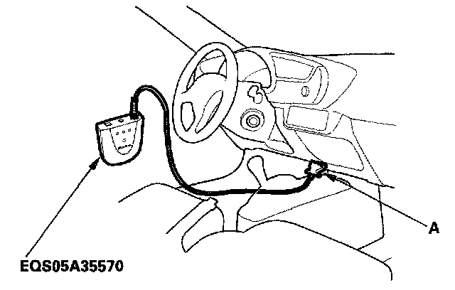 2. Connect the Honda Interface Module (HIM) to the Data Link Connector (DLC) (A) located under the driver's side of dashboard.