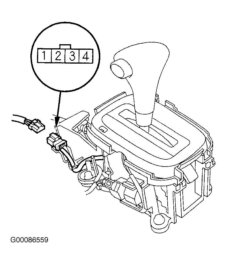 11. Check for continuity between the No. 3 and No. 4 terminals of the park pin switch connector (4-pin) while you move the shift lever in and out of the "P" position. See Figure. Is there continuity with the shift lever in the "P" position, and no continuity with the shift lever in any position other than "P"? If yes, repair open or short in the wires between the park pin switch connector and the steering lock/key switch assembly. If no, replace the park pin switch. See PARK PIN SWITCH  under REMOVAL & INSTALLATION.