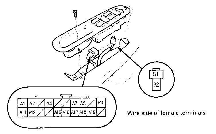 1. Remove the driver's door panel, and disconnect the connectors from the door multiplex control unit.