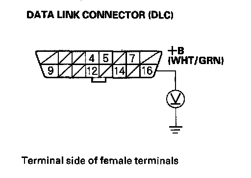 2. Measure voltage between data link connector (DLC) terminal No.16 and body ground.
