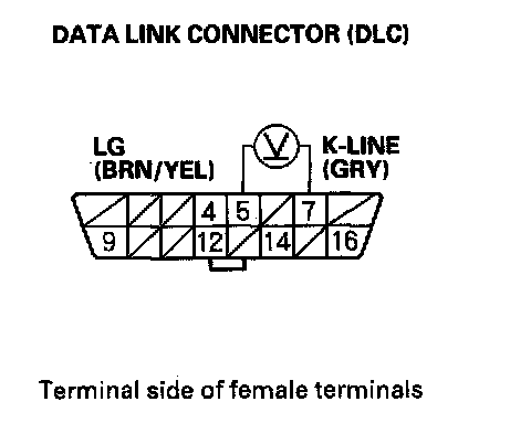 16. Measure voltage between DLC terminals No.5 and No.7.