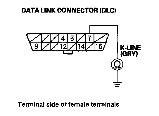 9. Check for continuity between DLC terminal No.7 and body ground.