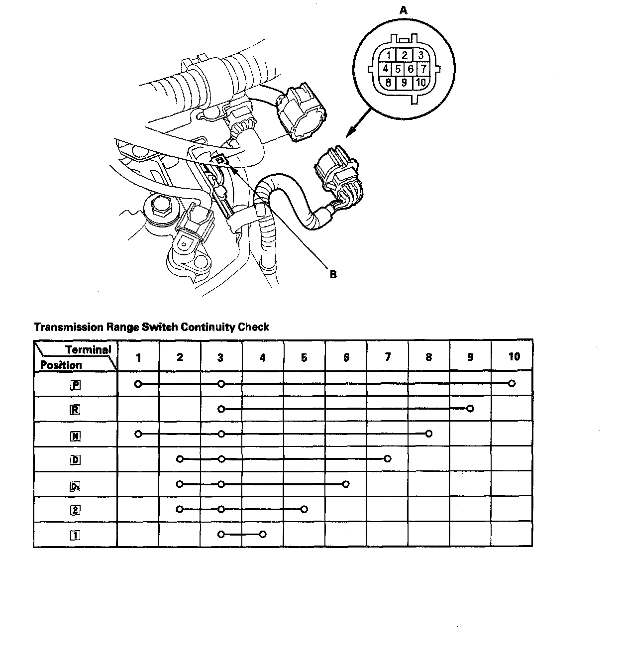 Home >> Honda >> 2002 >> Odyssey EX V6-3.5L >> Repair and Diagnosis >> Powertrain Management >> Computers and Control Systems >> Transmission Position Sensor/Switch >> Testing and Inspection