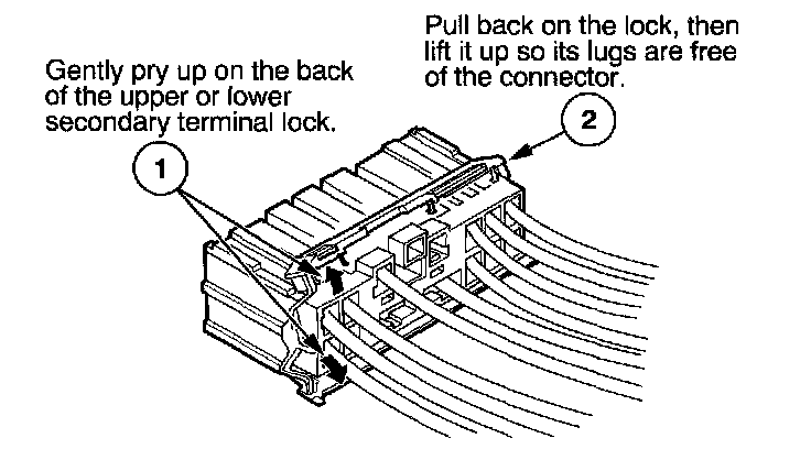 - If it has a secondary terminal lock, go to Connectors With a Secondary Lock. A secondary lock, found on most connectors on some models, is an additional locking device on the connector housing as a backup for the primary lock on the terminal.