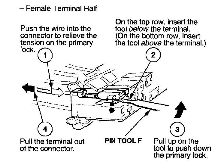 Home >> Honda >> 2002 >> Odyssey LX V6-3.5L >> Repair and Diagnosis >> Relays and Modules >> Relays and Modules - Powertrain Management >> Relays and Modules - Computers and Control Systems >> Engine Control Module >> Diagrams >> Diagnostic Aids >> Terminal Replacement Procedure >> How to Replace Connector Terminals