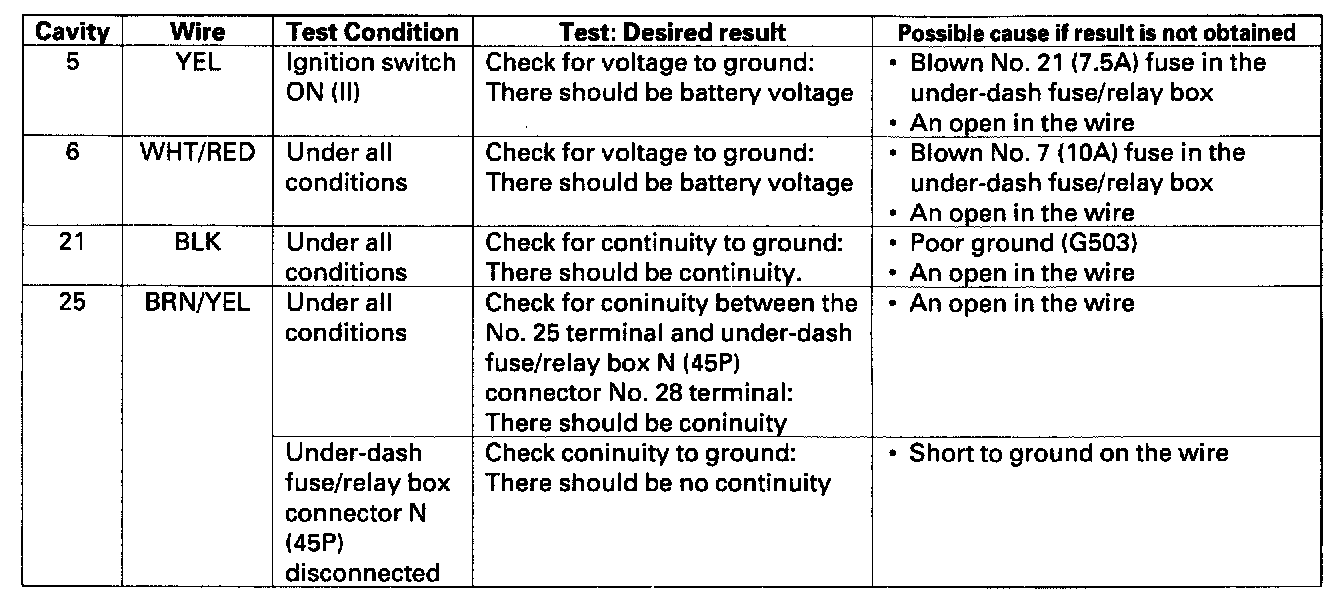 Home >> Honda >> 2003 >> Accord L4-2.4L >> Repair and Diagnosis >> Powertrain Management >> Computers and Control Systems >> Information Bus >> Testing and Inspection >> Component Tests and General Diagnostics >> Gauge Control Module Input Test