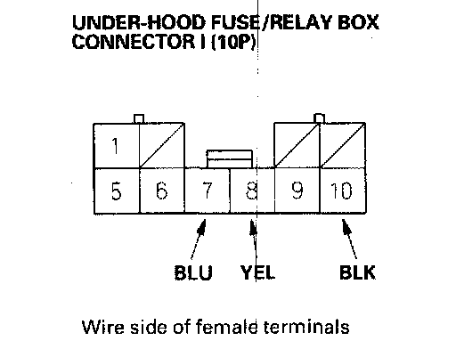 2. Disconnect the 10P connector from the under-hood fuse/relay box.
