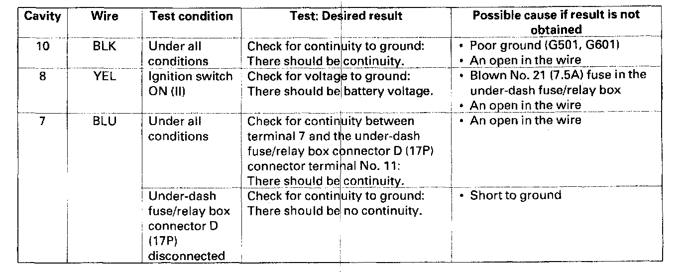 Home >> Honda >> 2003 >> Accord L4-2.4L >> Repair and Diagnosis >> Powertrain Management >> Computers and Control Systems >> Information Bus >> Testing and Inspection >> Component Tests and General Diagnostics >> Relay Control Module Input Test