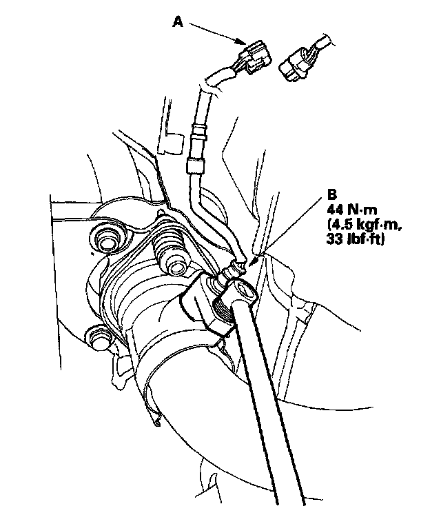 1. Disconnect the A/F sensor 4P connector (A), then remove the A/F sensor (B).
