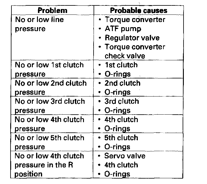 Home >> Honda >> 2003 >> Accord L4-2.4L >> Repair and Diagnosis >> Powertrain Management >> Transmission Control Systems >> Testing and Inspection >> Component Tests and General Diagnostics >> Non-Trouble Code Procedures >> Pressure Test