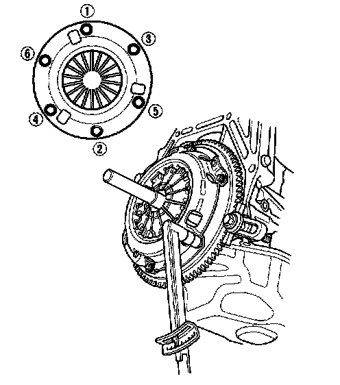 Torque the mounting bolts in a crisscross pattern. Tighten the bolts in several steps to prevent warping the diaphragm spring.