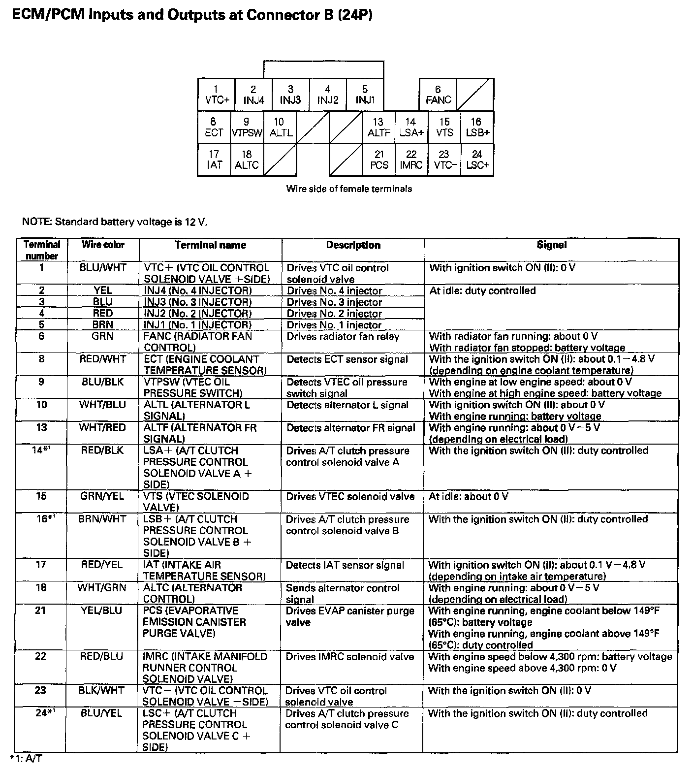 ECM/PCM Inputs and Outputs at Connector B (24P):