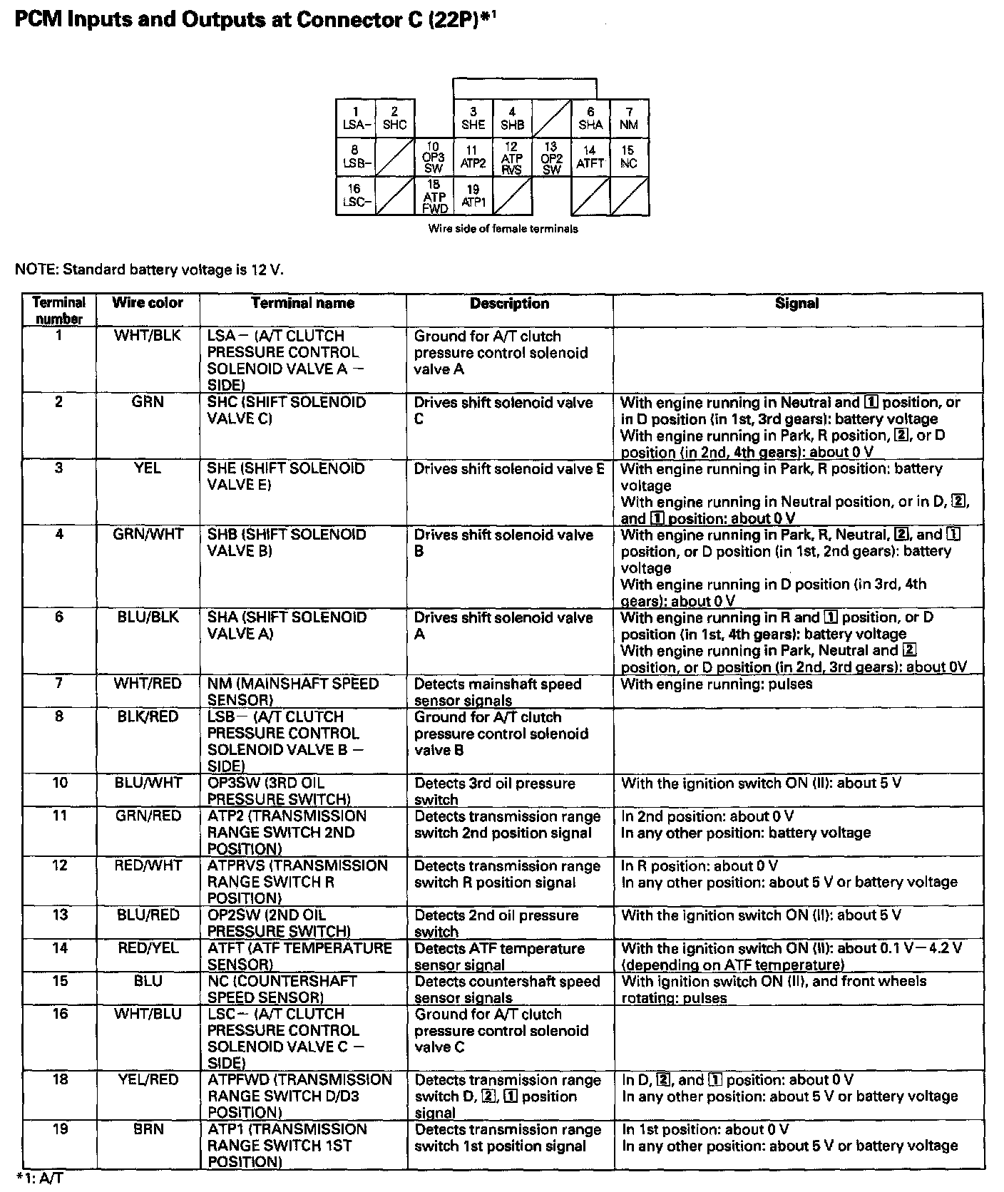 PCM Inputs and Outputs at Connector C (22P):