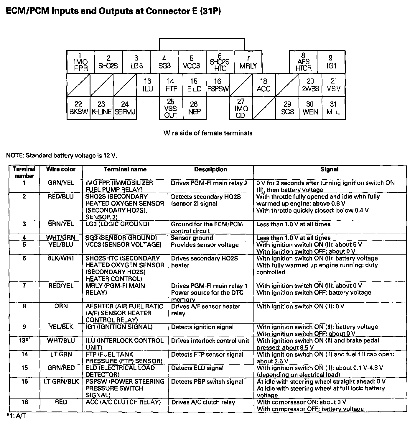 ECM/PCM Inputs and Outputs at Connector E (31P):