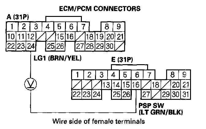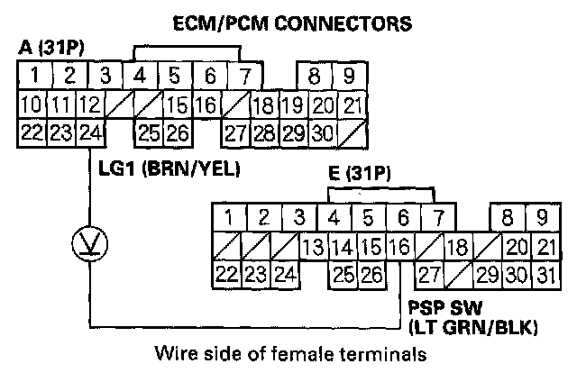 Home >> Honda >> 2003 >> CR-V 2WD L4-2.4L >> Repair and Diagnosis >> Powertrain Management >> Computers and Control Systems >> Testing and Inspection >> Component Tests and General Diagnostics >> PSP Switch Signal Circuit Troubleshooting