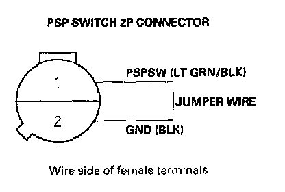 9. At the harness side, connect PSP switch 2P connector terminals No. 1 and No. 2 with a jumper wire.