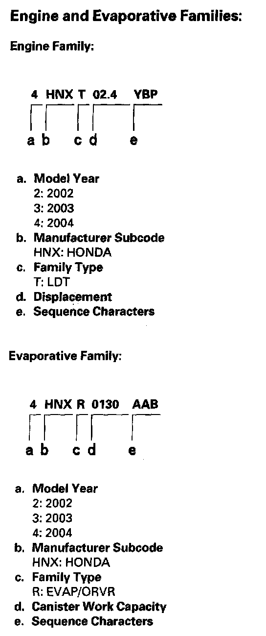 Engine And Evaporative Families: