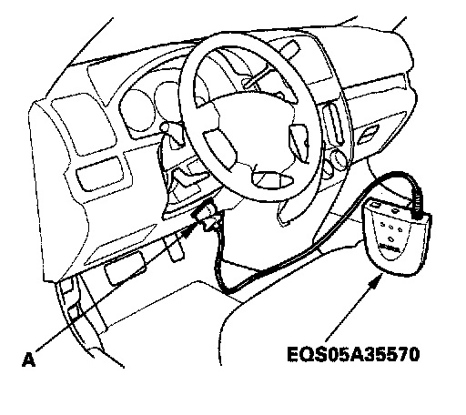 2. Connect the Honda interface module (HIM) to the data link connector (DLC) (A) located under the driver's side of dashboard.