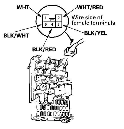 2. Disconnect connector A(5P) from the under-dash fuse/relay box.