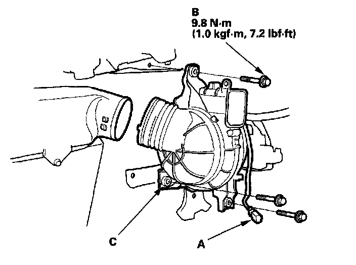 3. Remove the bolts (B) and the IPU module fan (C).