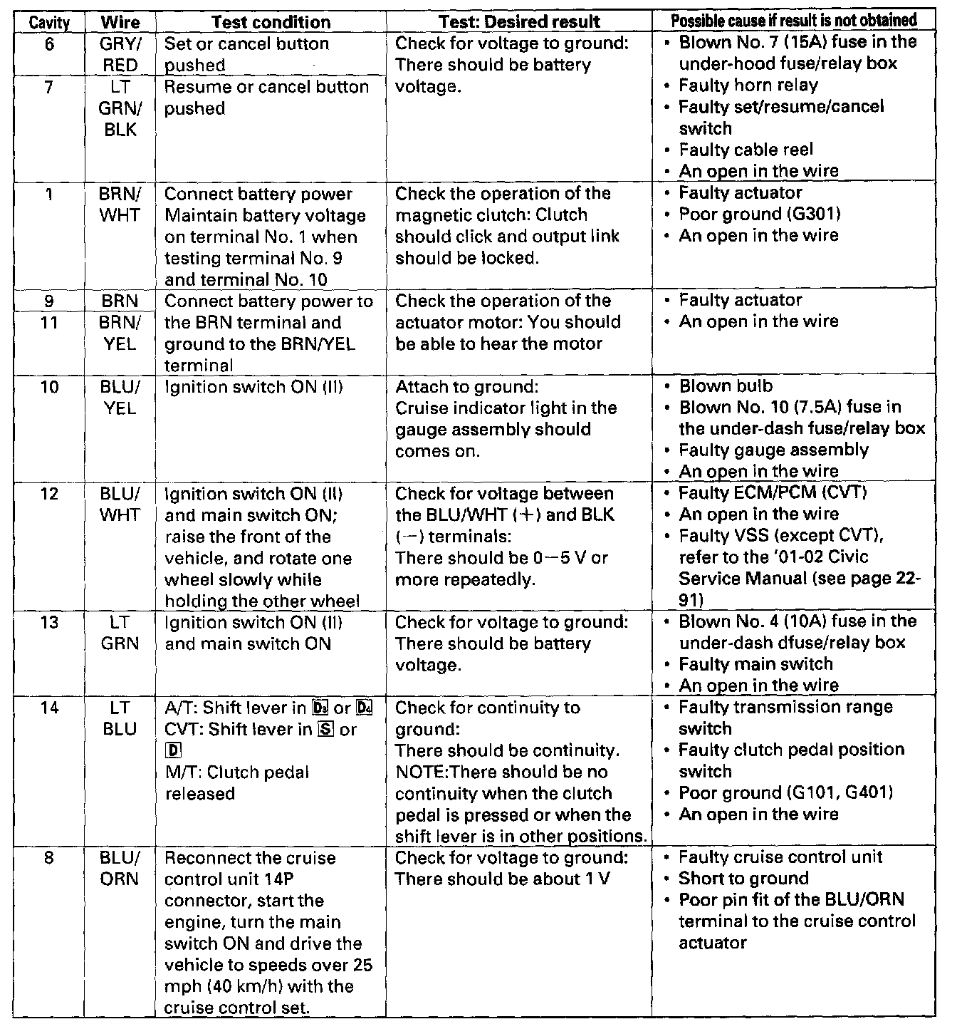 Home >> Honda >> 2003 >> Civic L4-1.7L CNG >> Repair and Diagnosis >> Cruise Control >> Cruise Control Module >> Testing and Inspection