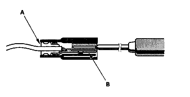 3. If you cannot get to the wire side of the connector or the wire side is sealed (A), disconnect the connector and probe the terminals (B) from the terminal side. Do not force the probe into the connector.