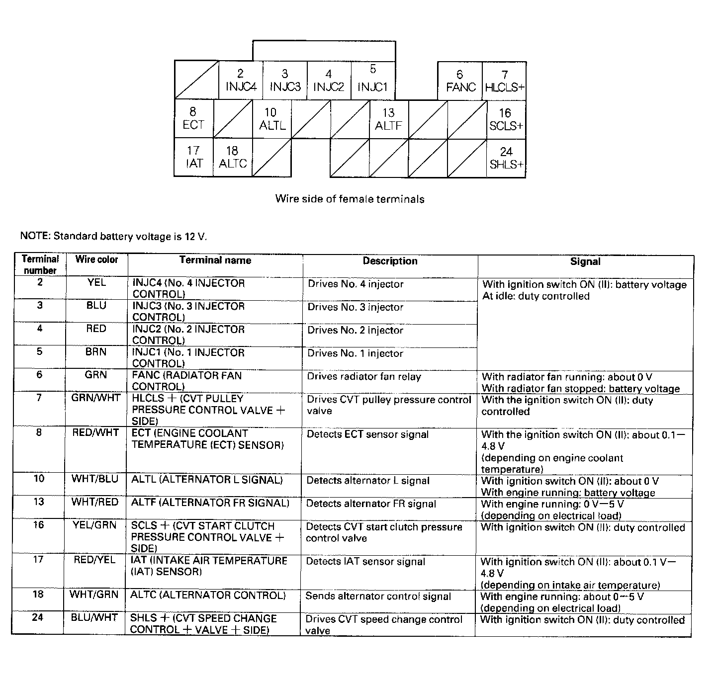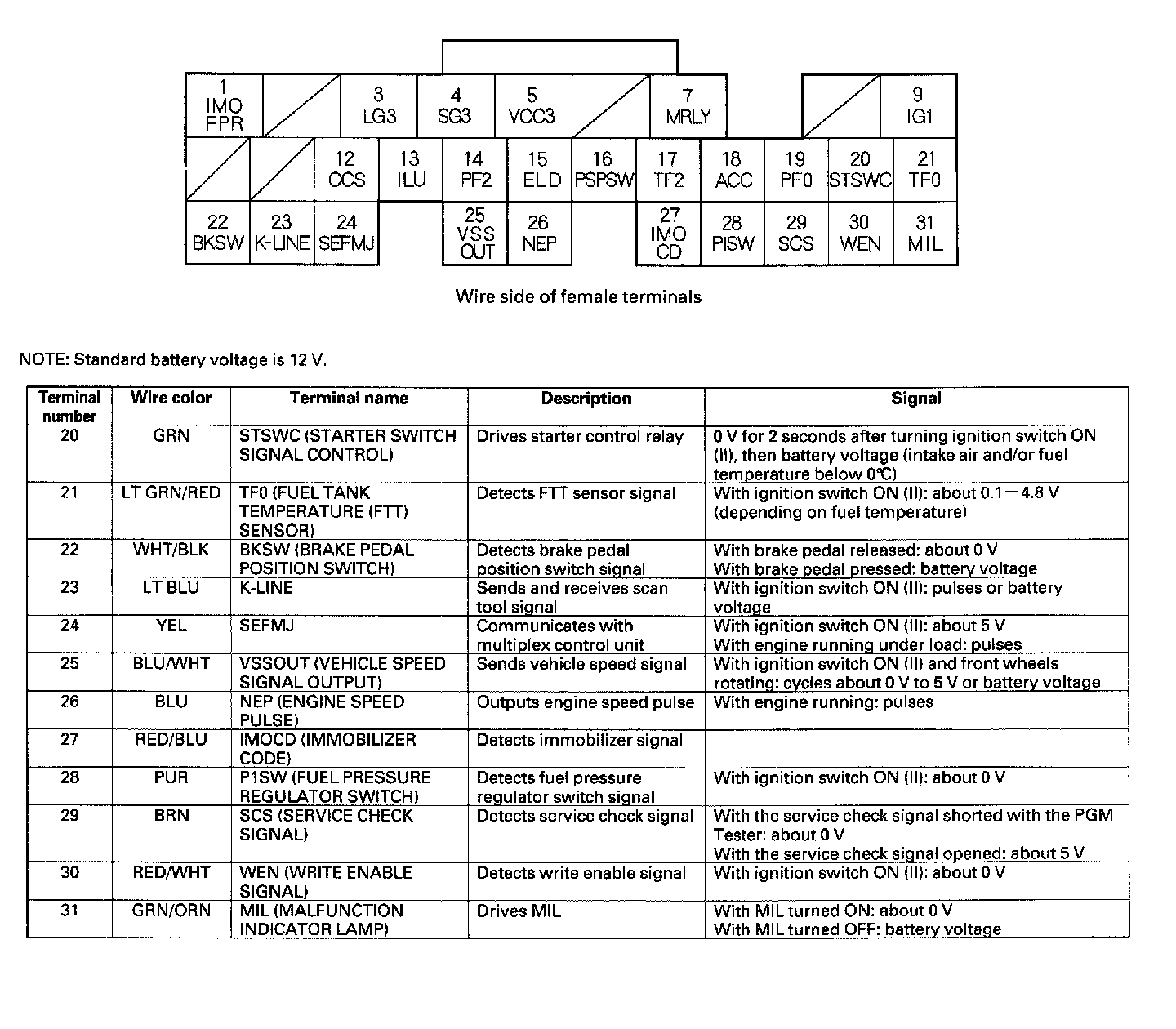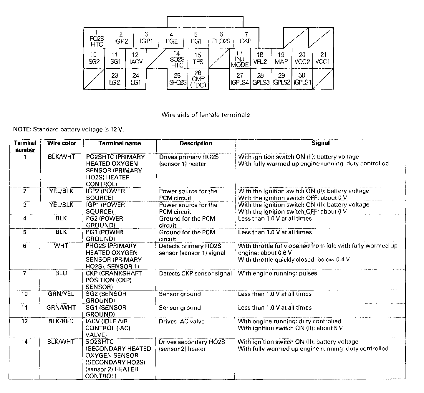Home >> Honda >> 2003 >> Civic L4-1.7L CNG >> Repair and Diagnosis >> Powertrain Management >> Relays and Modules - Powertrain Management >> Relays and Modules - Computers and Control Systems >> Engine Control Module >> Testing and Inspection >> Pinout Values and Diagnostic Parameters