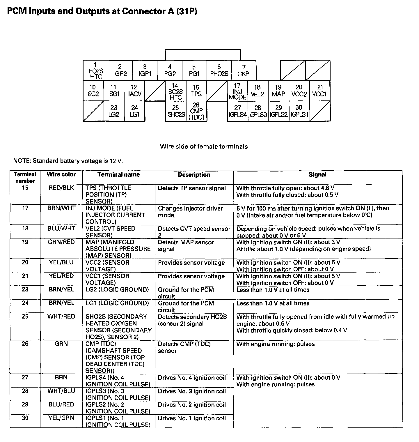 ECM/PCM Inputs And Outputs At Connector A (31P):