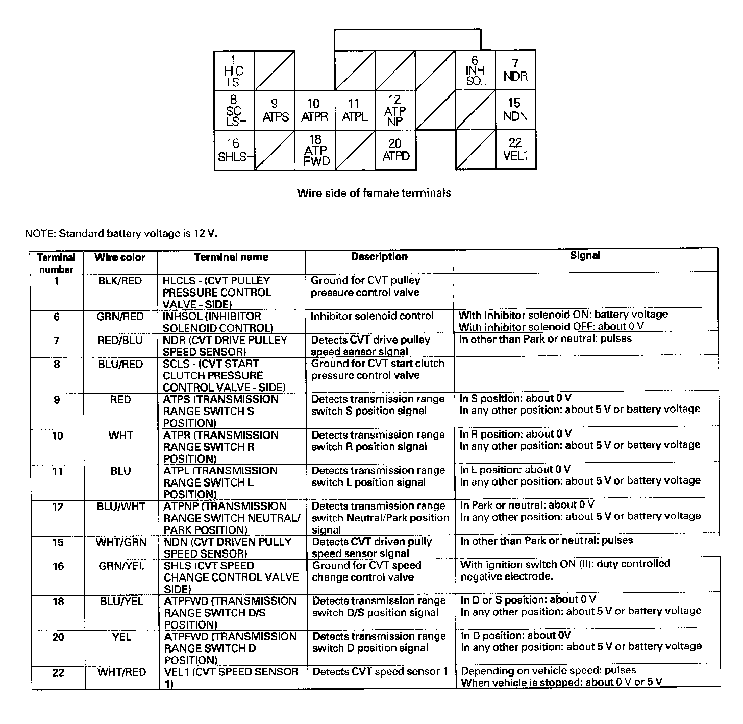 ECM/PCM Inputs And Outputs At Connector C (22P):