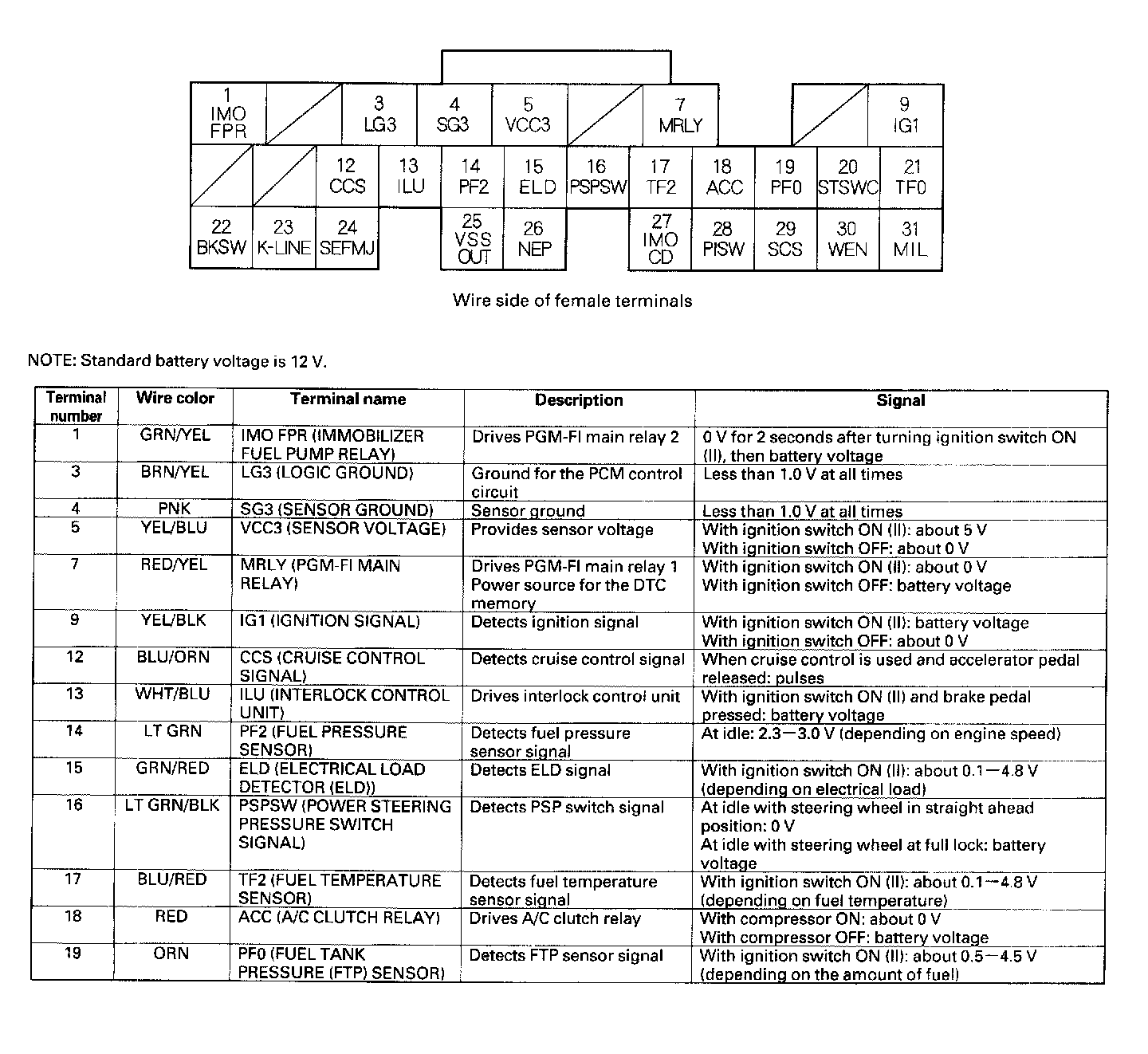 ECM/PCM Inputs And Outputs At Connector E (31P):