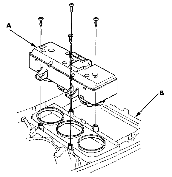 2. Remove the self-tapping screws and the heater control panel (A) from the center panel (B).
