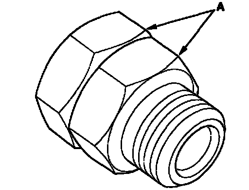 3. Install the two 20 x 1.5 mm nuts (A) onto the new oil filter feed pipe. Hold the nut with a wrench, then tighten the other nut.