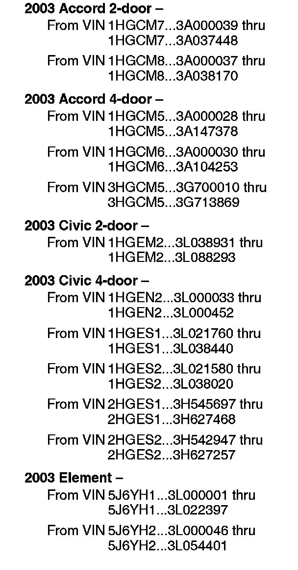 Home >> Honda >> 2003 >> Element 2WD L4-2.4L >> Repair and Diagnosis >> Powertrain Management >> Transmission Control Systems >> Technical Service Bulletins >> Recalls >> Recall - Ignition/Shift Interlock Defect >> Overview