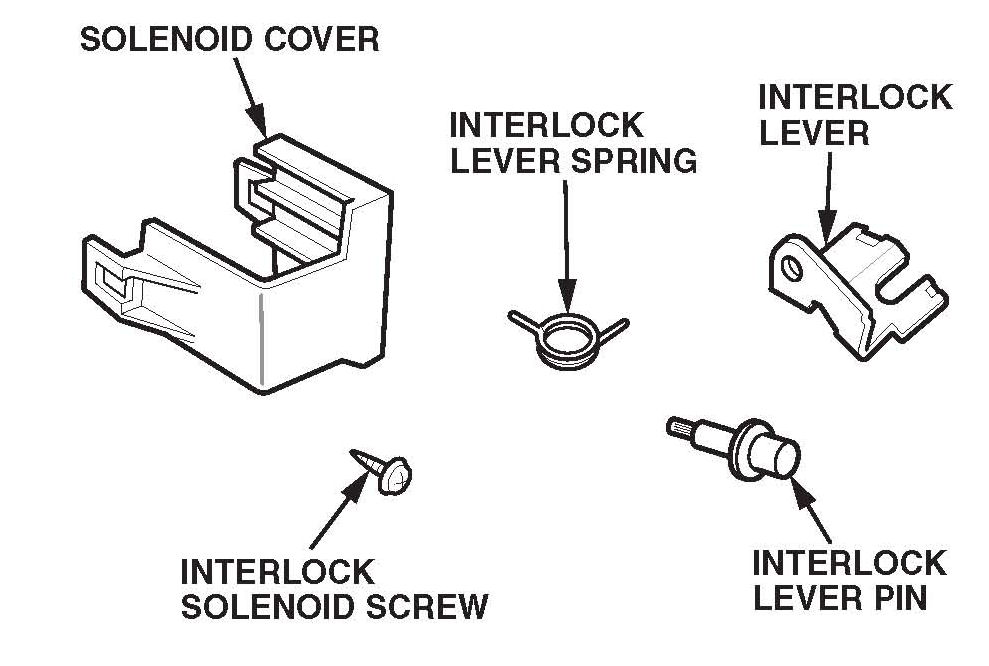 2. Note the position of the interlock solenoid plunger; you'll need to install it the same way.