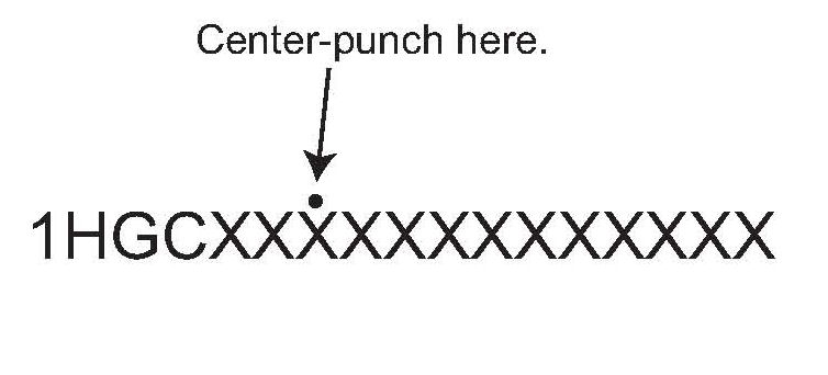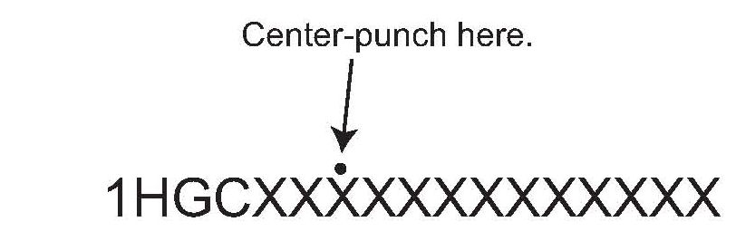 4. Center-punch a completion mark above the seventh character of the engine compartment VIN.