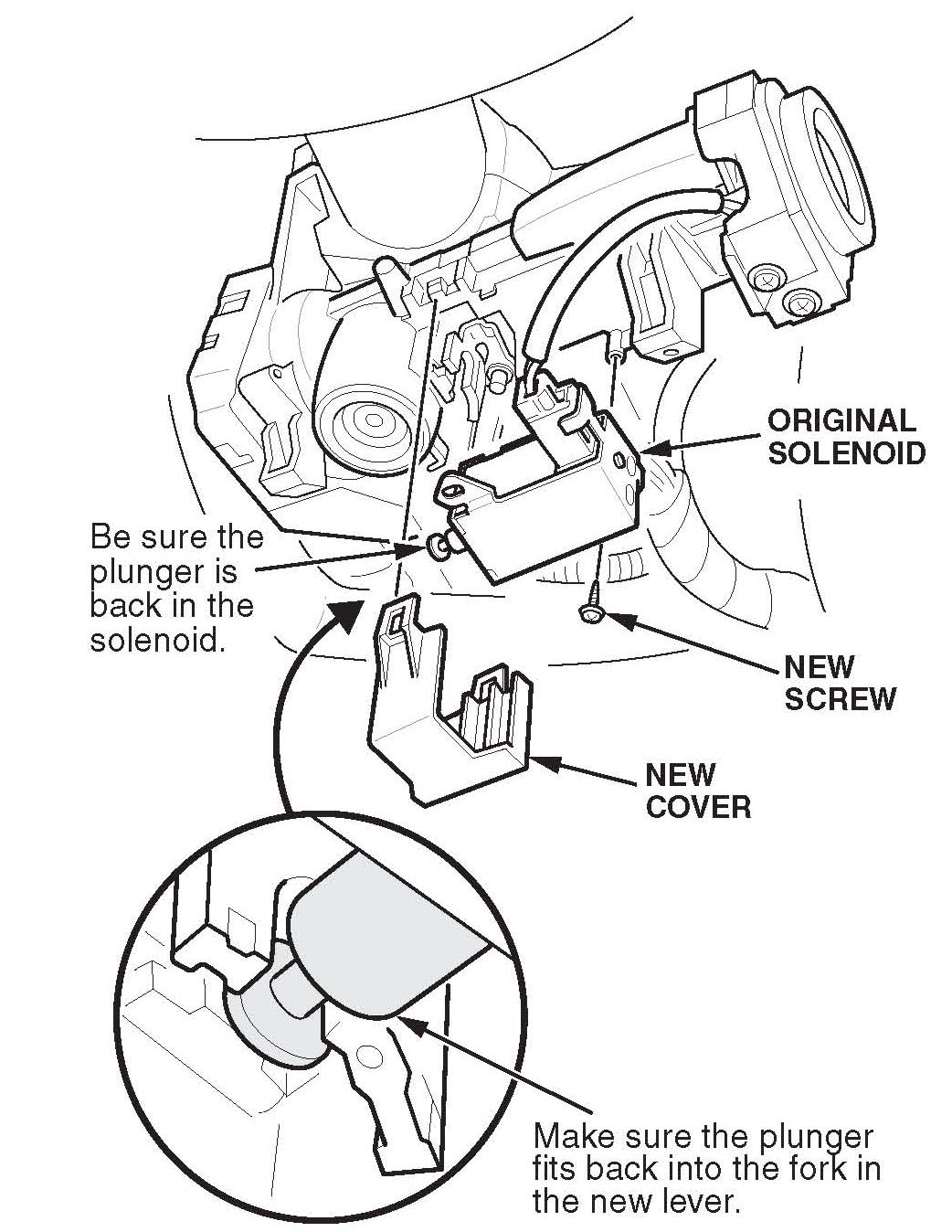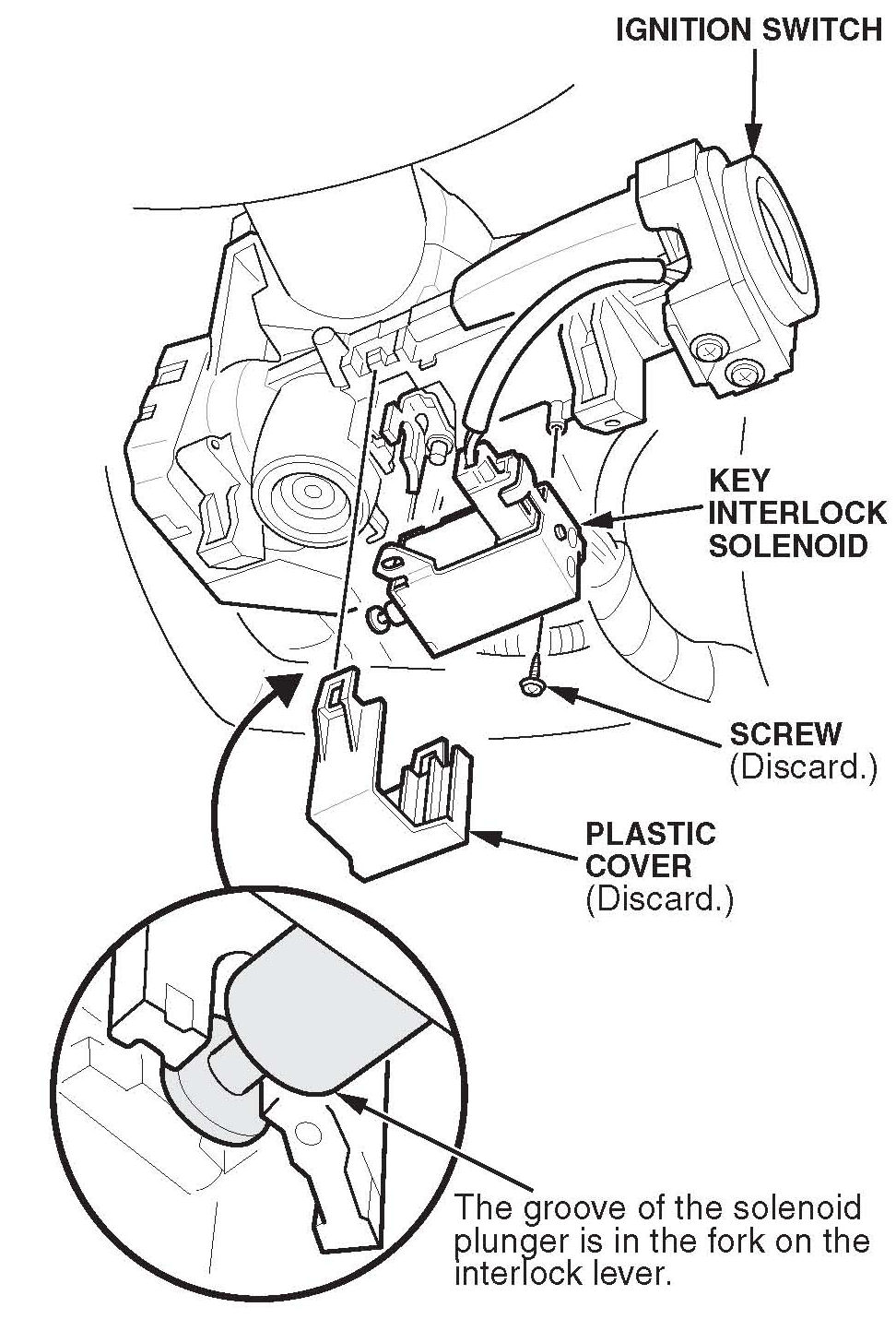 1. Remove and discard the plastic cover from the ignition switch key interlock solenoid.