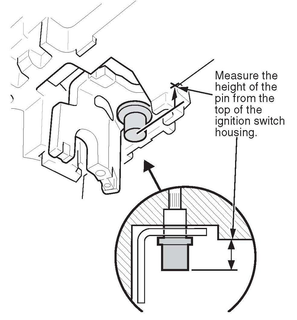 In addition, check for a punch mark above the seventh character of the engine compartment VIN. A punch mark in that location means the ignition switch key interlock has already been inspected/repaired.