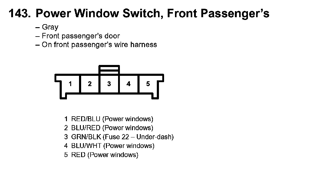 143. Power Window Switch, Front Passenger's: