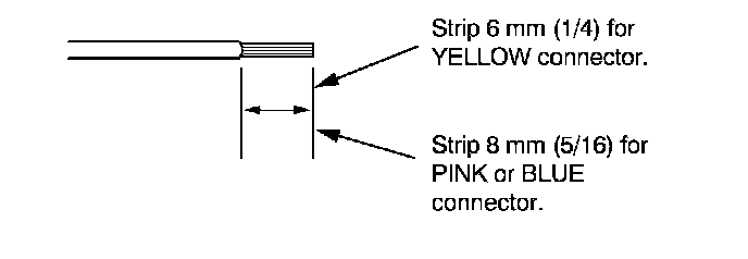7. If you are using a yellow splice connector, strip about 6 mm (1/4 inch) of insulation off the ends of both wires. If you are using a pink or blue splice connector, strip off about 8 mm (5/16 inch) of insulation.