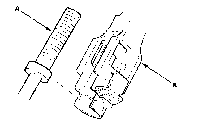 7. Separate the shift cable end (A) from the shift cable end holder (B).