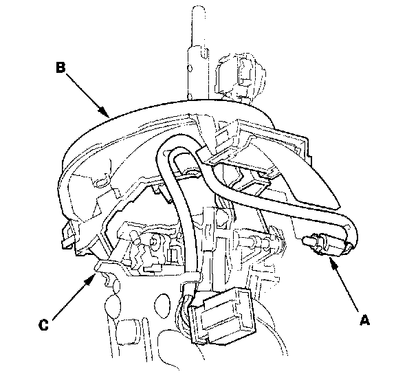 11. Remove the O/D switch/shift lock solenoid connector (C), then disconnect the connector.