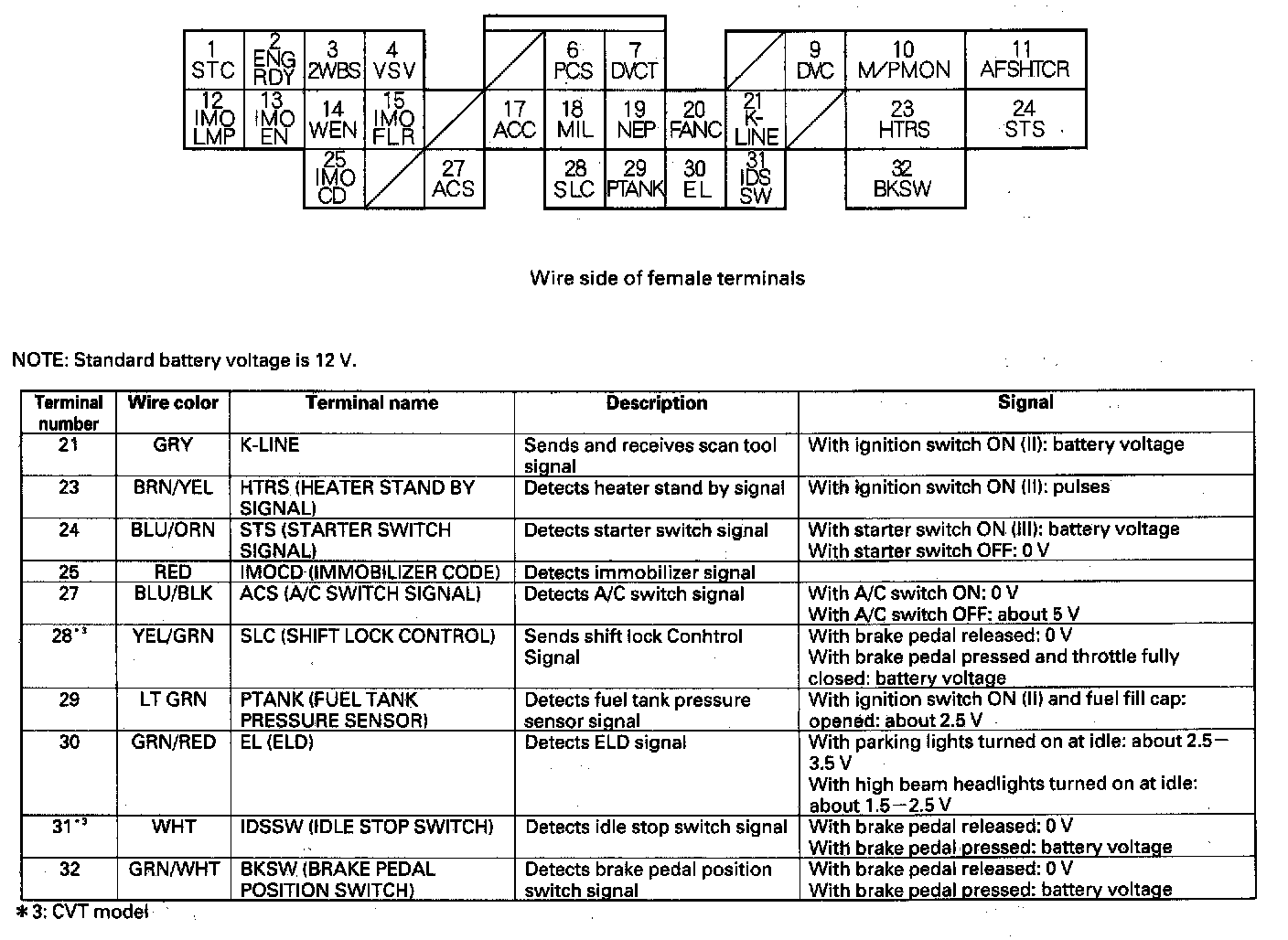 ECM/PCM Inputs And Outputs At Connector A (32P) Part 2: